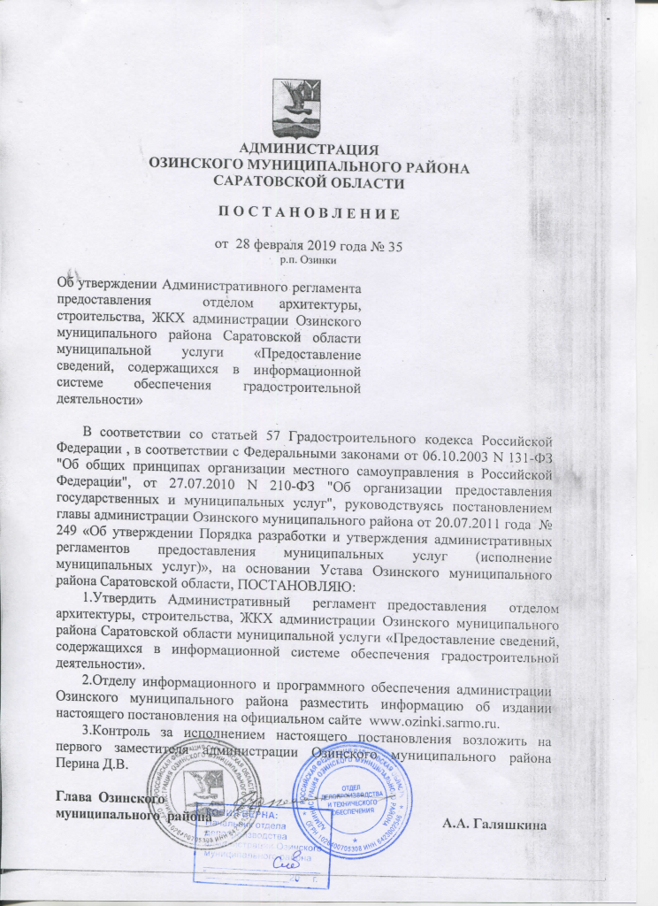 ПОСТАНОВЛЕНИЕ от 28.02.2019 г. №35 АДМИНИСТРАТИВНЫЙ РЕГЛАМЕНТ