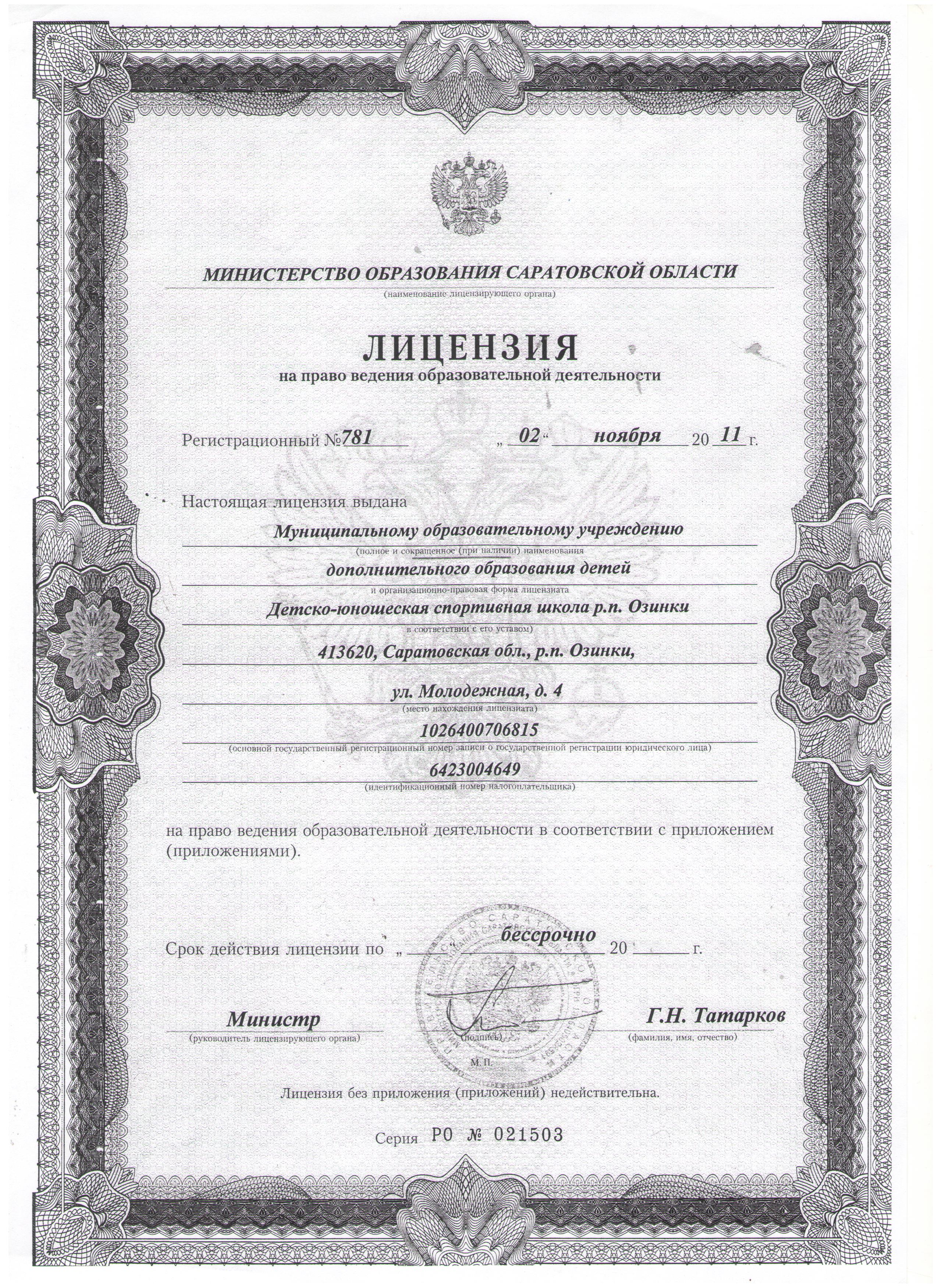 приема в муниципальное бюджетное учреждение дополнительного образования Детско-юношеская спортивная школа р.п. Озинки