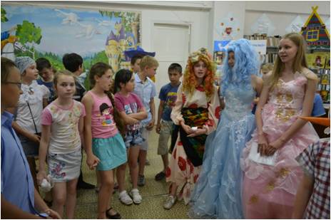 30 мая ЦДБ открыла свои двери для своих друзей, читателей – детей и пригласила на библиосумерки «Волшебный мир книги и кино», в мир чудес и открытий. С восторгом встретили и взрослые, и дети, героев мультфильма «Маша и Медведь». Озорная Маша пыталась сама стать писательницей, но это оказалось очень трудно. Для этого нужно очень много читать, и Медведь проводил Машу в Детскую библиотеку за книгой. Но здесь наших героев встретила Баба Яга со своими, книжными друзьями. И ребятам, участникам мероприятия, пришлось помогать Маше преодолеть 5 препятствий, чтобы узнать какую же книгу получит Маша. Ребята быстро и дружно отгадали все загадки, выполнили все задания, и Незнайка вручил Маше книгу Н. Носова «Приключения Незнайки». Было очень весело, Красная шапочка исполнила песенку, ребята поддержали ее и вспомнили еще песни из любимых мультфильмов. Затем ребят пригласили на импровизированную «киносъемочную площадку», оборудованную старыми киноаппаратом и осветительным фонарем, «кинолентами» с фрагментами любимых мультфильмов. Все вместе совершили экскурс в историю кино, узнали о профессиях в кино, проверили свои актерские способности, а так - же посмотрели работу новых «актеров» в сказке «Репка». В заключении посмотрели мультфильм «Как играть в книгу». Именно книга, наш добрый друг, знакомит нас с новыми героями, а кино совершает чудо – оживляет наши любимые сказки и наших любимых литературных героев.