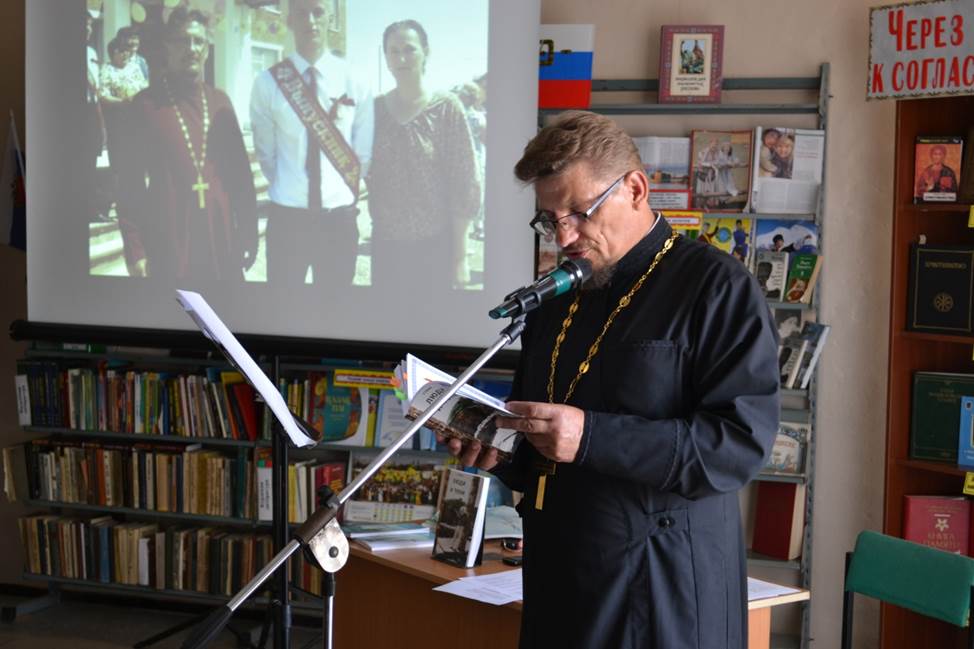 17 июня в центральной районной библиотеке состоялась необычная встреча. Главной темой мероприятия стала презентация первой книги стихов «Люди и тени» местного автора, настоятеля Храма Святителя Николая Чудотворца Отца Павла (Павла Миронец).