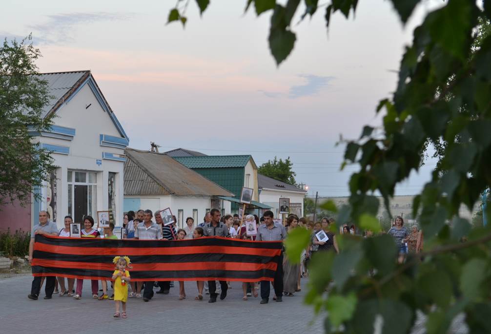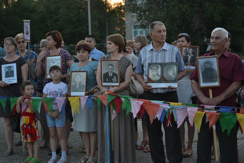 По улицам районного центра прошло шествие «Бессмертного полка», началась патриотическая акция с митинга у мемориала Героям Гражданской войны (привокзальная площадь ул. Советская). Колонна, увенчанная георгиевской лентой, выстроилась на центральной площади.