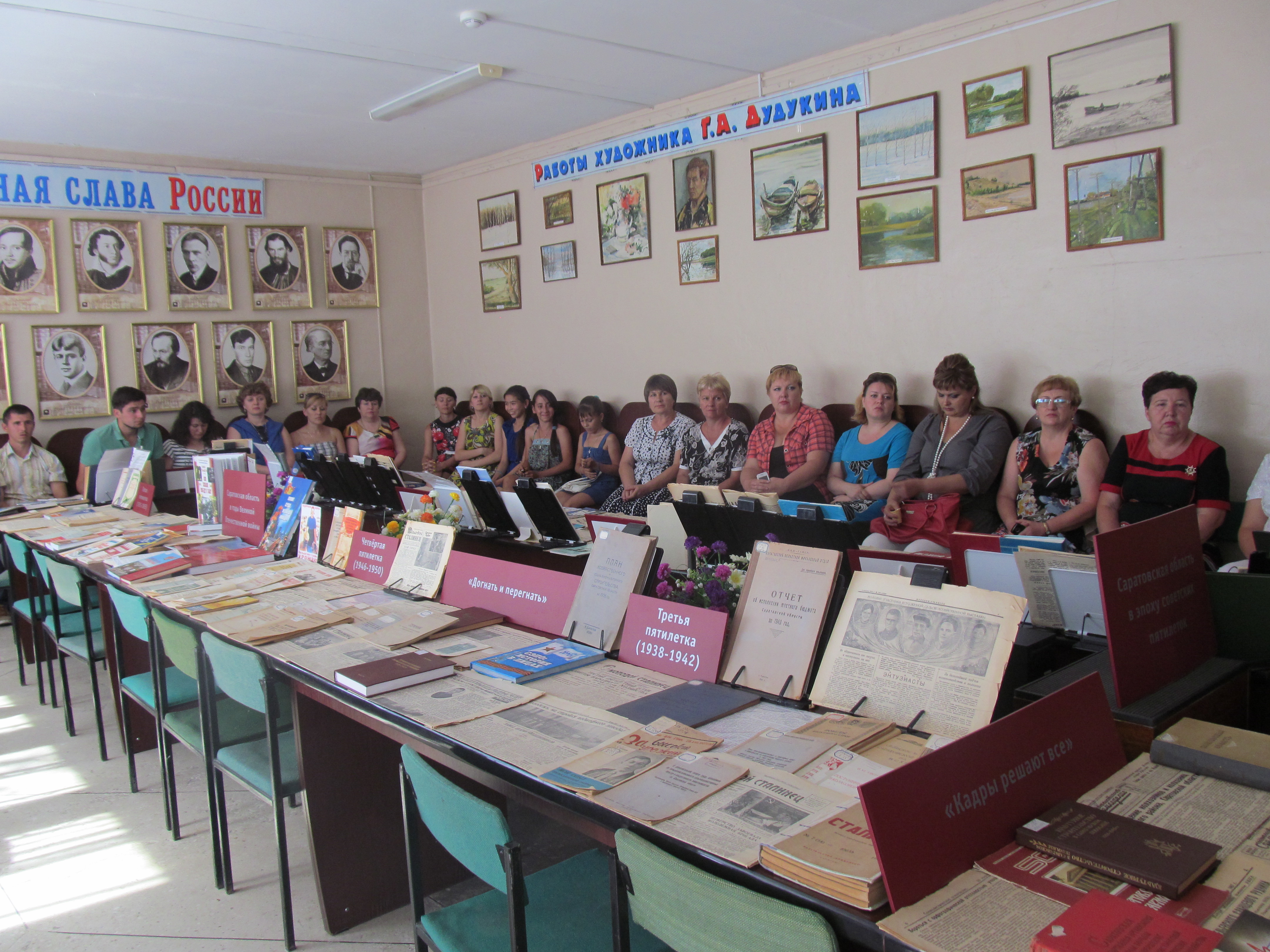 30 июня 2016 г. в Центральной библиотеке в рамках историко-краеведческого проекта «Годы. События. Люди» состоялась презентация передвижной книжно-иллюстративной выставки «Время больших перемен…», посвященная 80-летию образования Саратовской области из Саратовской областной универсальной научной библиотеки. С обзорной экскурсией по выставке выступила заведующая отделом краеведческой литературы Областной библиотеки Елена Евгеньевна Крянева.Она отметила, что эта литература впервые покинула стены саратовской библиотеки и у жителей Озинского района есть уникальная возможность познакомиться с редкими изданиями из фондов Областной библиотеки. Экспозиция выставки включает книги, брошюры и районные издания, рассказывающие о том вкладе, который внесли районы в развитие Саратовского региона. Особый интерес у посетителей выставки вызвали газеты периода Великой Отечественной войны 1941-1945 гг., книги, брошюры, статьи из сборников, рассказывающие об отдельных колхозах, совхозах района, описывающие опыт работы передовиков производства, в то числе и Озинских тружеников.