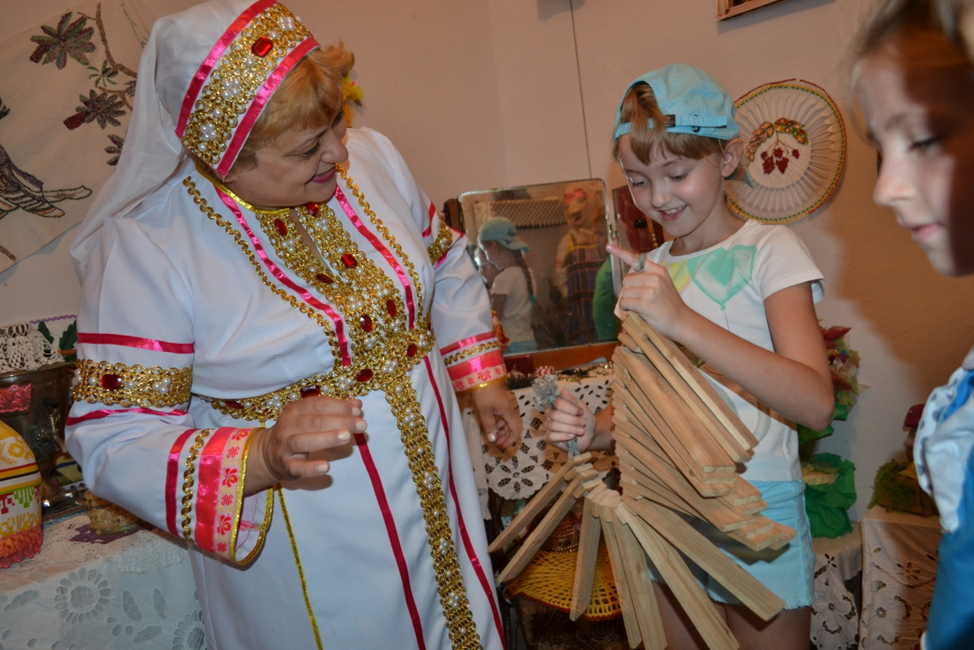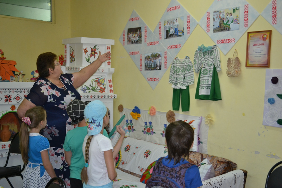 Экскурсия продолжилась в комнате Белорусской культуры. Здесь прозвучал интересный рассказ об особенностях празднования Медового Спаса в Белоруссии, состоялось знакомство с искусством рукоделия и предметами быта белорусской культуры.