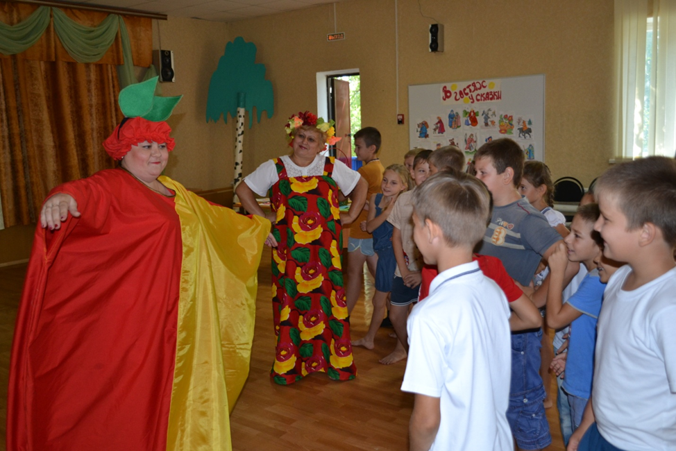 Волшебные персонажи с ребятами провели веселые игры, конкурсы и эстафеты. А Хозяйка праздника всех угощала вкусными и сочными яблоками.