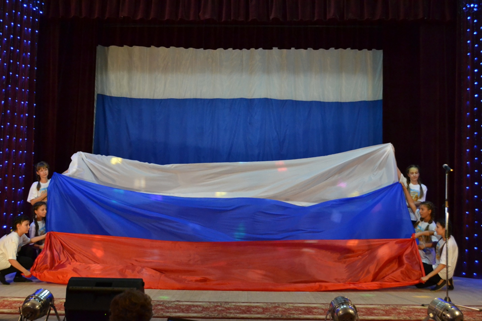 Со сцены прозвучали песни, посвященные Государственному флагу и России.