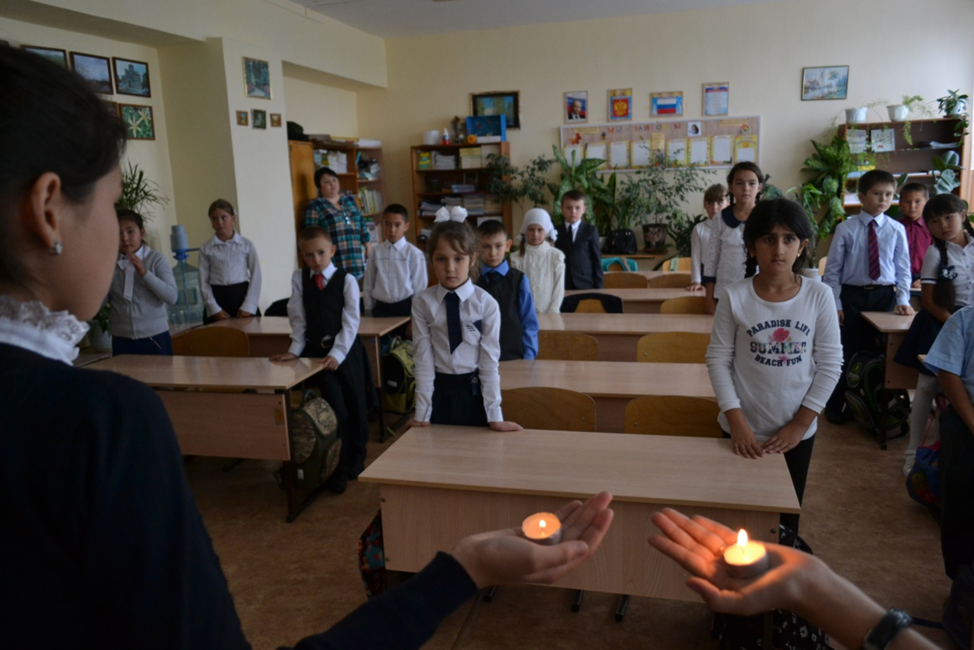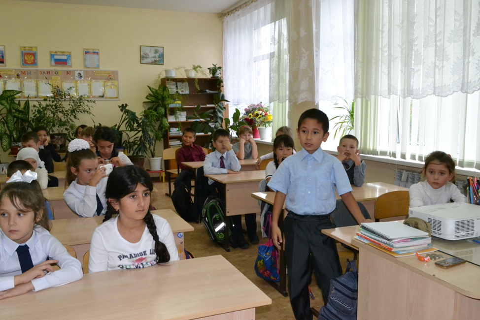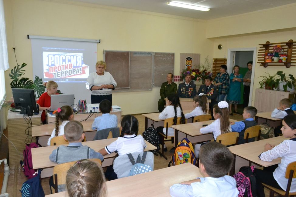 2 сентября для учащихся МОУ СОШ специалисты центра национальных культур провели урок мужества «Россия против террора». Основной целью мероприятия было формирование у детей позиции нравственного и правового отрицания терроризма как явления, как метода решения социальных проблем.