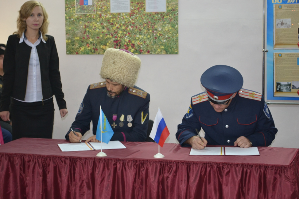 В стенах районного историко-краеведческого музея состоялась торжественная церемония подписания двустороннего соглашения о сотрудничестве Саратовского отдела Волжского казачьего войска и Уральской «Яицкой» общины Западно-Казахстанской области Республики Казахстан.