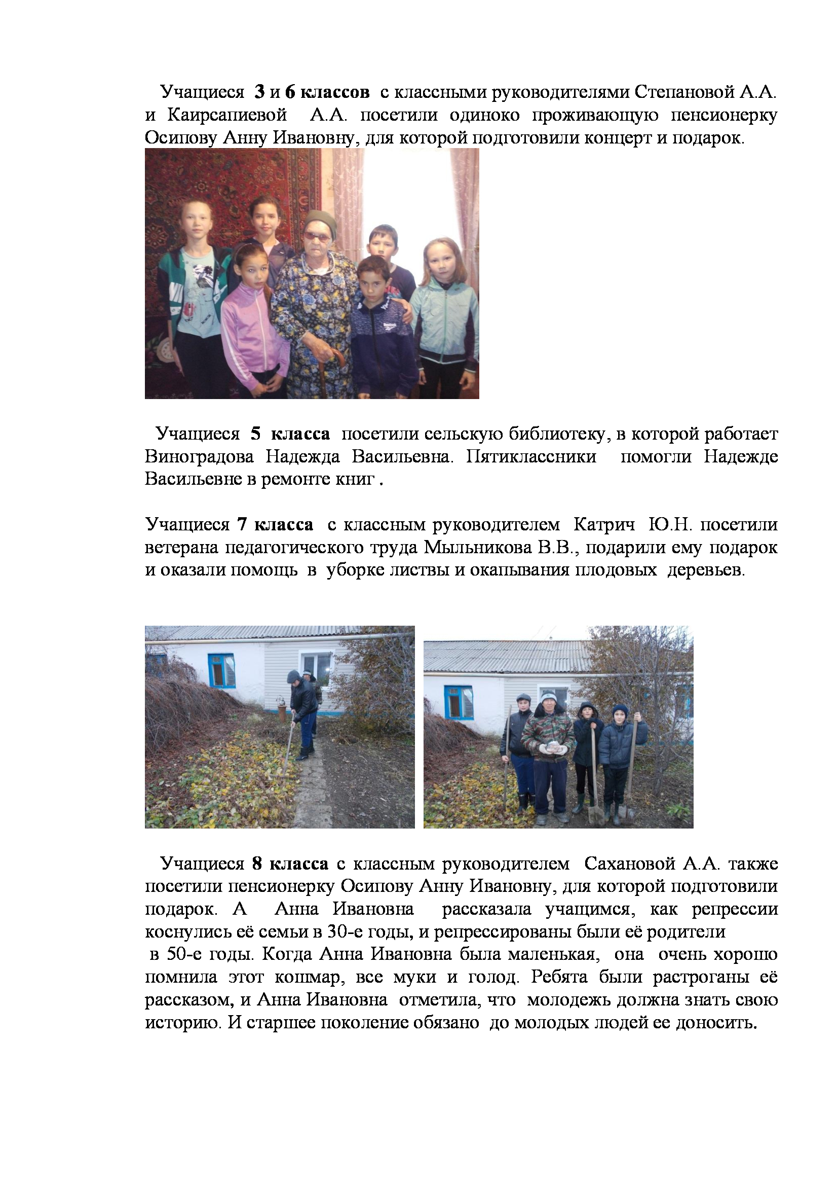 Отчёт о проведении благотворительной акции «Старость, согретая нашим теплом» МОУ «СОШ п.Модин»
