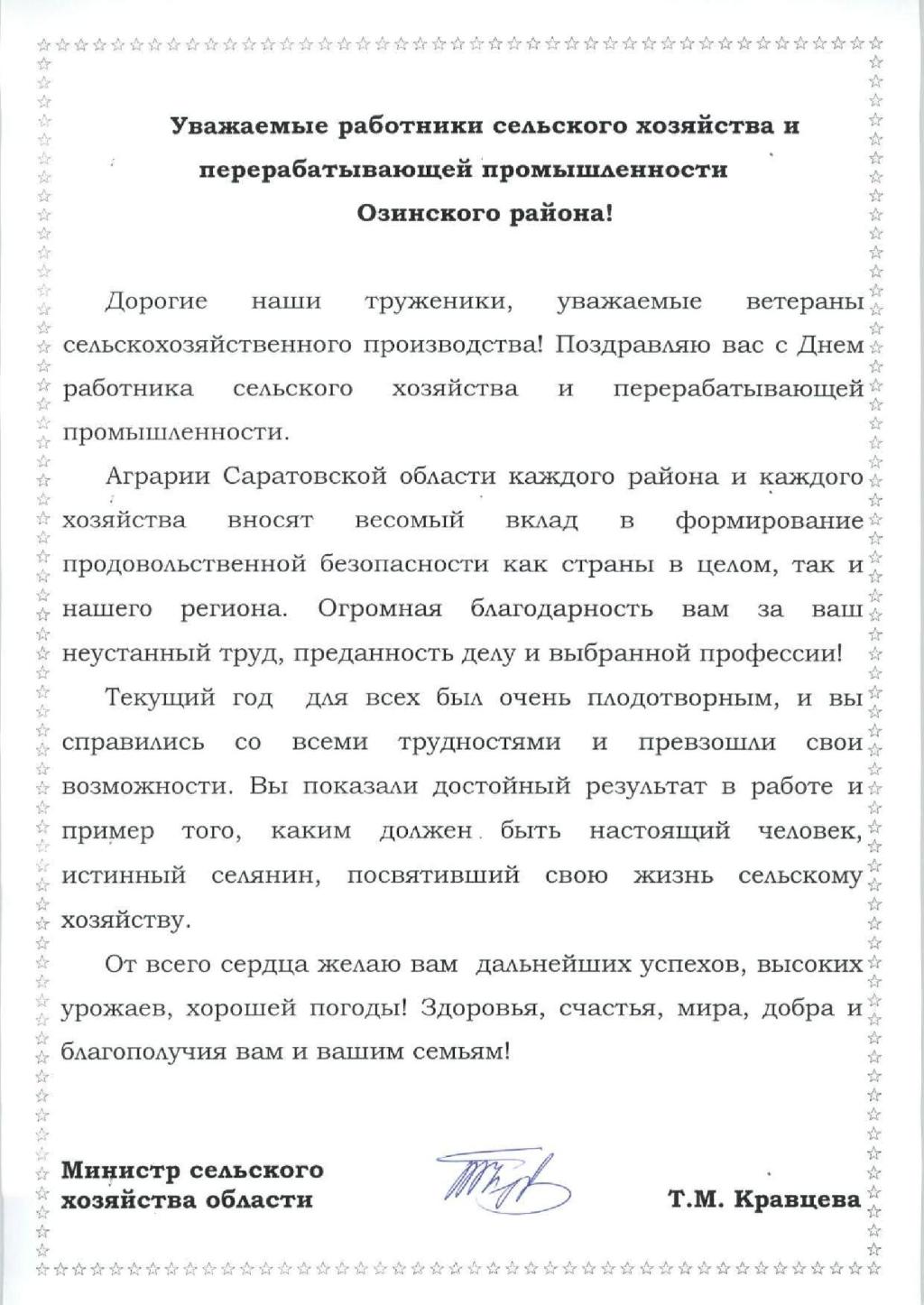 Поздравление от министра сельского хозяйства области