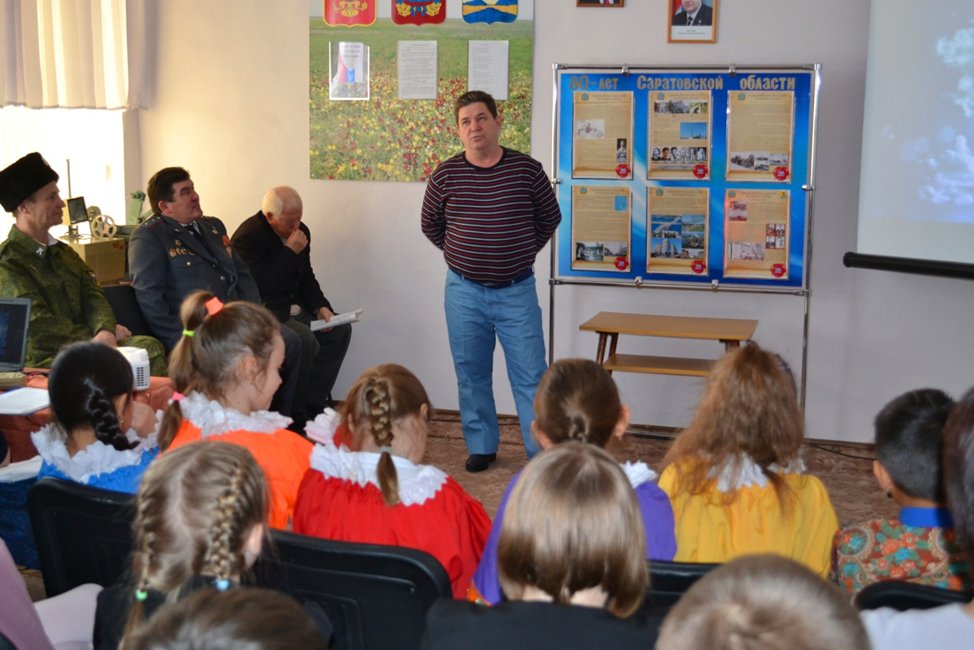 Рассказ о героях разных времен, выступления гостей сопровождались кадрами хроники событий Великой Отечественной войны, афганских и чеченских событий. Ребят познакомили с именами тех героев-земляков, в честь которых названы улицы в районном центре и установлены памятники.