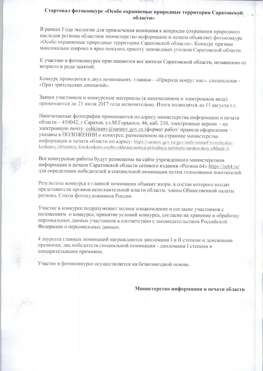 Стартовал фотоконкурс "Особо охраняемые природные территории Саратовской области"