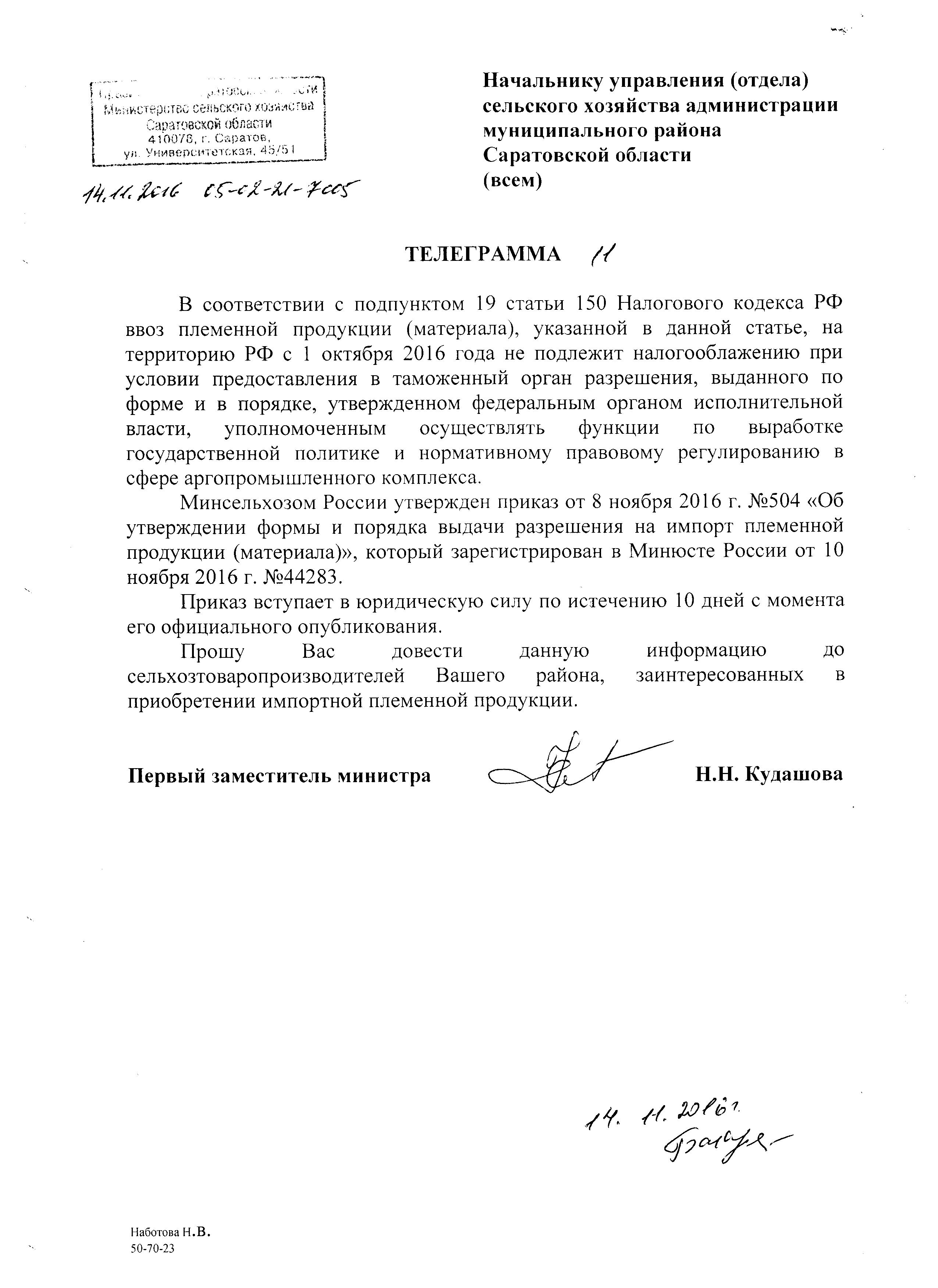 Минсельхозом России утвержден приказ от 8 ноября 2016 года