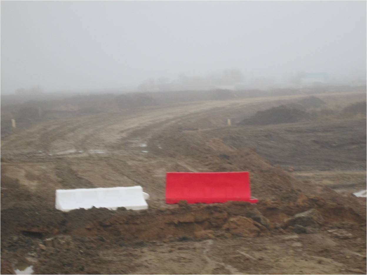В настоящее время по данному объекту выполнены все подготовительные работы, произведена рекультивация земель, демонтаж существующих труб и дорожных знаков, разборка ленточного фундамента, монтированы водопропускные трубы, произведена насыпь земляного полотна с устройством подстилающих и выравнивающих слоев оснований из песка.