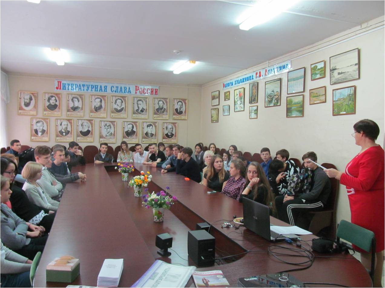 Библиограф Лазарева Л.В. познакомила с выставкой и рекомендательным списком литературы «Вам, абитуриенты», где представлены книги, журналы для выпускников и абитуриентов, а также познакомила ребят с тематической картотекой «Молодежь в лабиринте времени» и её разделам. Мероприятие сопровождалось слайд презентацией. Активные участники блиц опроса получили памятки о профессиях.
