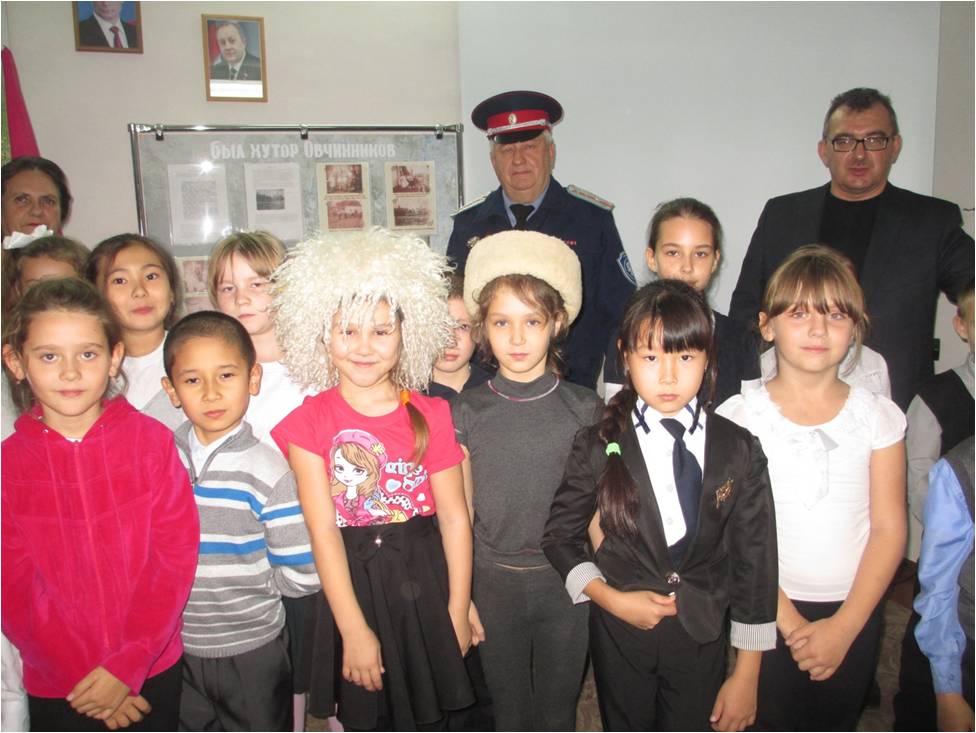 Ребята познакомились с атрибутами одежды казаков, подержали в руках настоящую казачью шашку, примерили папаху. Встреча завершилась исполнением песни «Мы с тобой казаки».