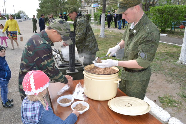 Здесь же работала полевая кухня. Воспитанники отряда «Юных пограничников» с завидным интересом знакомились с боевым оружием и обмундированием, отведали солдатской каши и горячего чая.